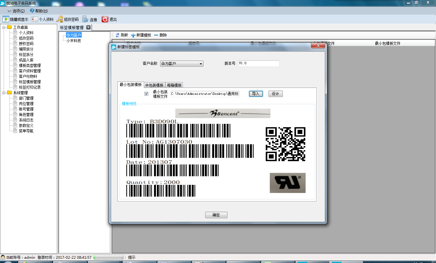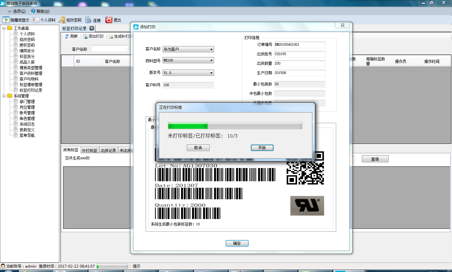 2)、掃描合格證條碼,根據(jù)功能參數(shù)自動生成卷盤標(biāo)簽,包含標(biāo)簽數(shù)量、型號、批號等信息;