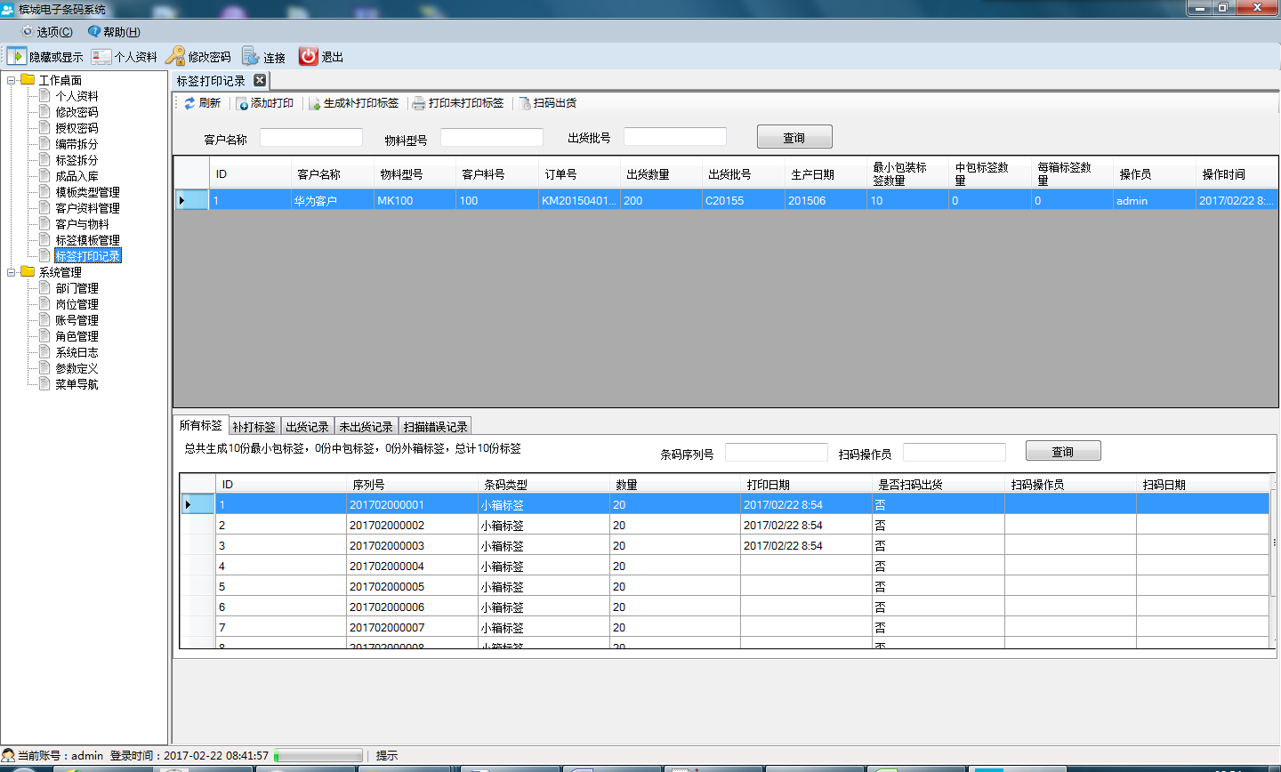 2)、記錄打印標(biāo)簽內(nèi)容、數(shù)量。