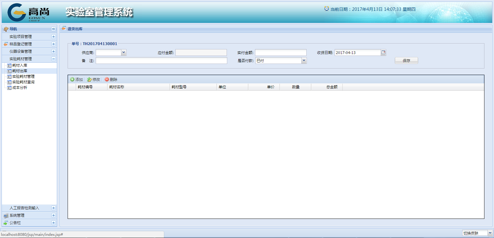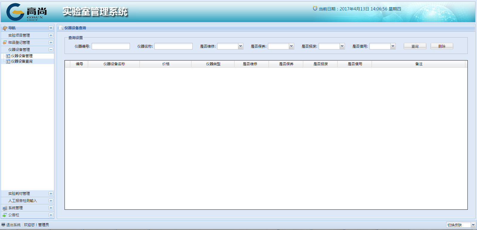 1、實(shí)驗(yàn)室管理系統(tǒng)集數(shù)據(jù)查詢、實(shí)驗(yàn)項(xiàng)目、儀器設(shè)備、易耗品目錄、易耗品出入庫(kù)記錄、儀器借用、人員情況、儀器標(biāo)定等,并且都有查詢功能,報(bào)表打印功能等。