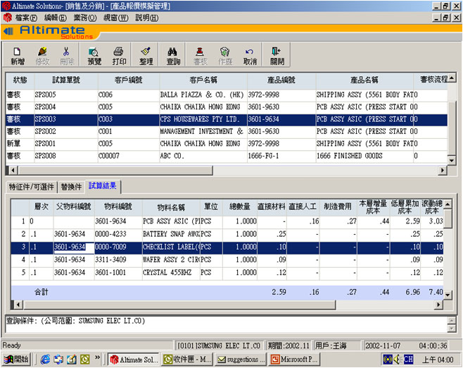 成本模擬:– 報價單成本試算表