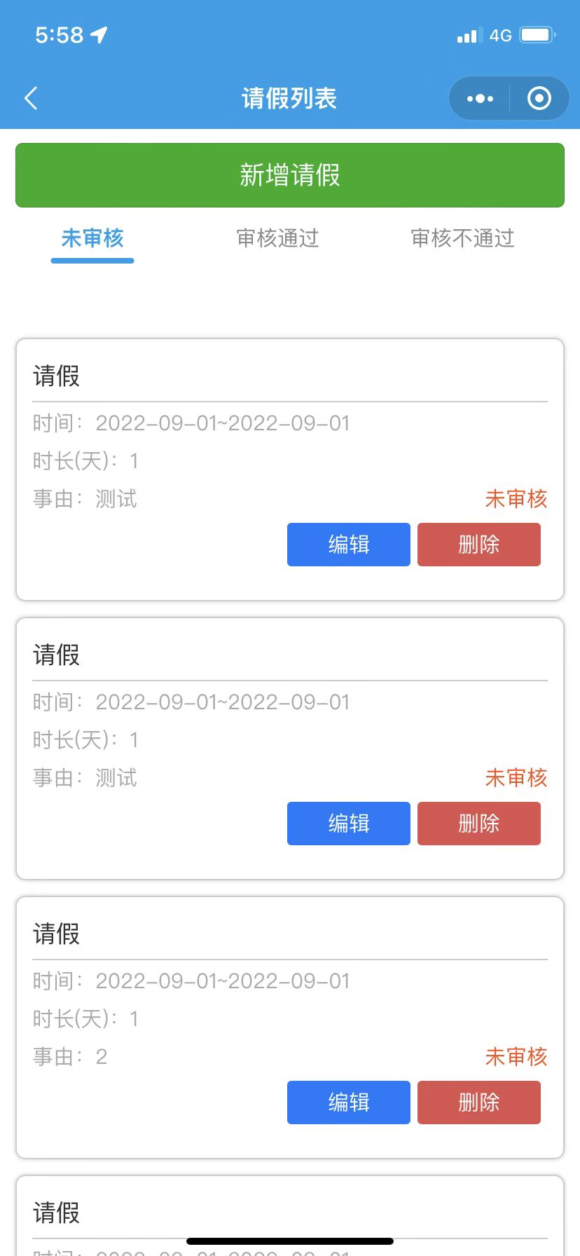 8、請(qǐng)假記錄(可查看小程序提交的請(qǐng)假記錄)